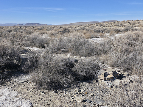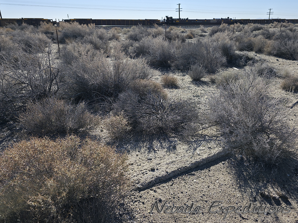 Massie was a station and siding along the Southern Pacific Railroad established c.1903 (note that although a Massie post office existed for a month in late 1902, it is unknown if it was here or at Hot Springs on the old Central Pacific line). In its infancy, Massie was an important station which serviced the new town of Fallon, sixteen miles distant, with a fast freight line operated by Frank Days. It was believed that a town would develop, and Massie was planned to become the junction point for a new railroad branch to Fallon. By the end of 1904, however, SP moved its station and telegraph office to Hazen and, especially after completion of a new water reservoir there in 1907, Massie's importance quickly faded. The siding remains in use, but only foundations remain of the station and town that could have been.