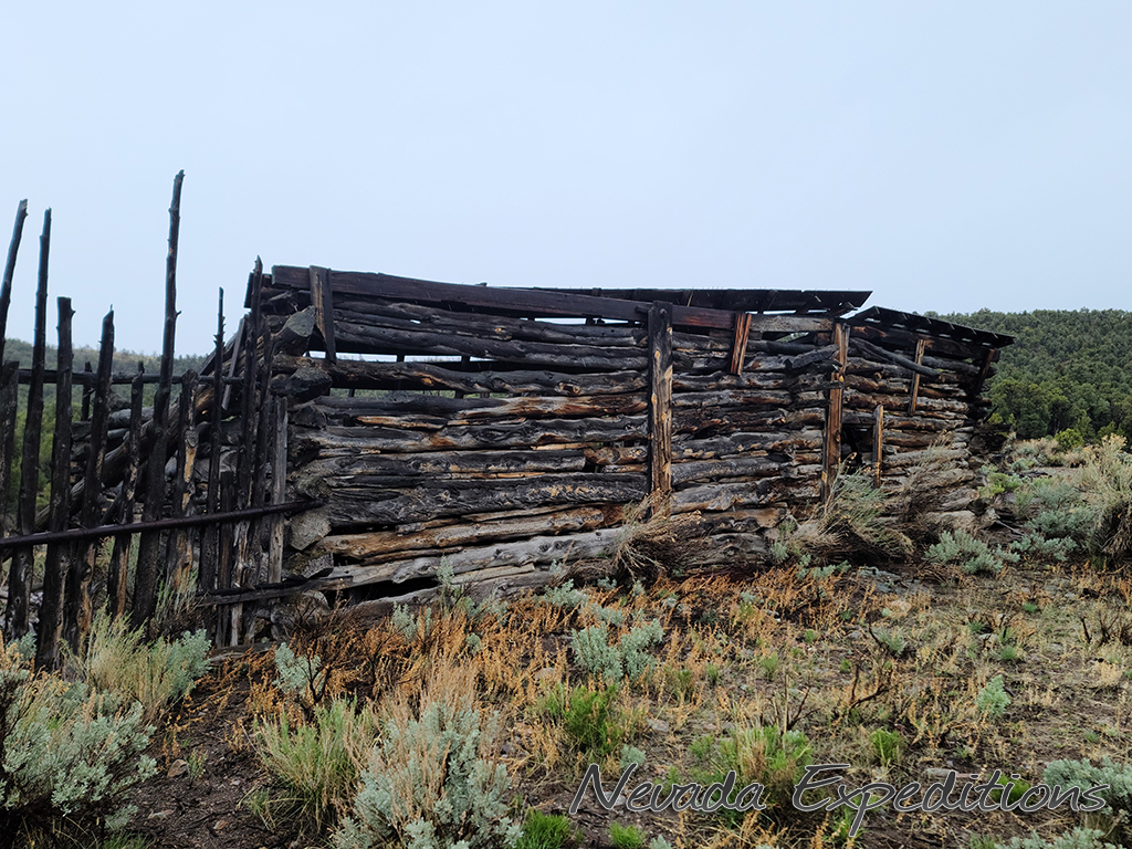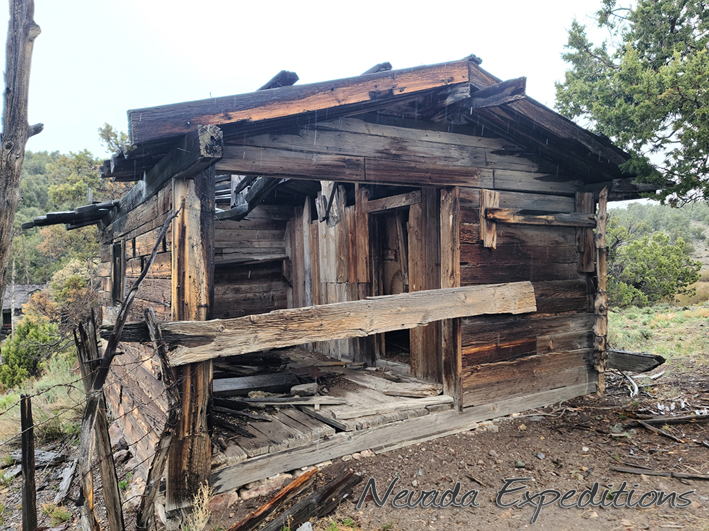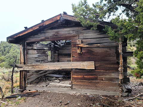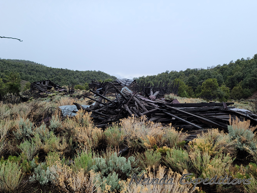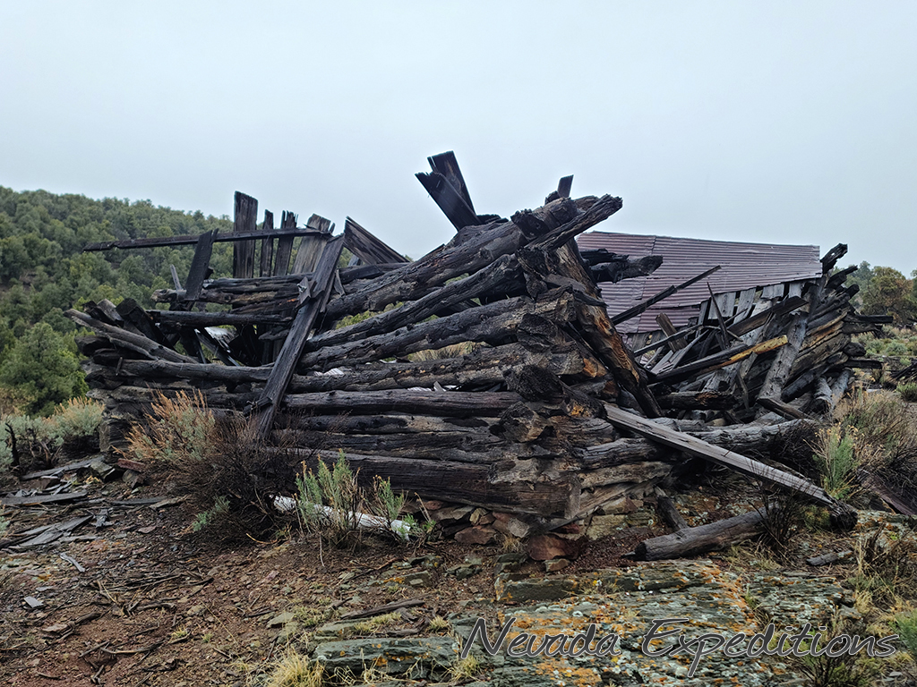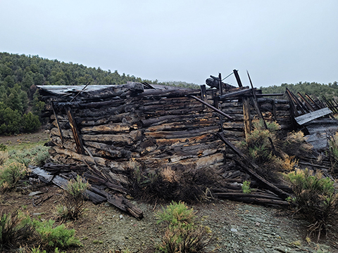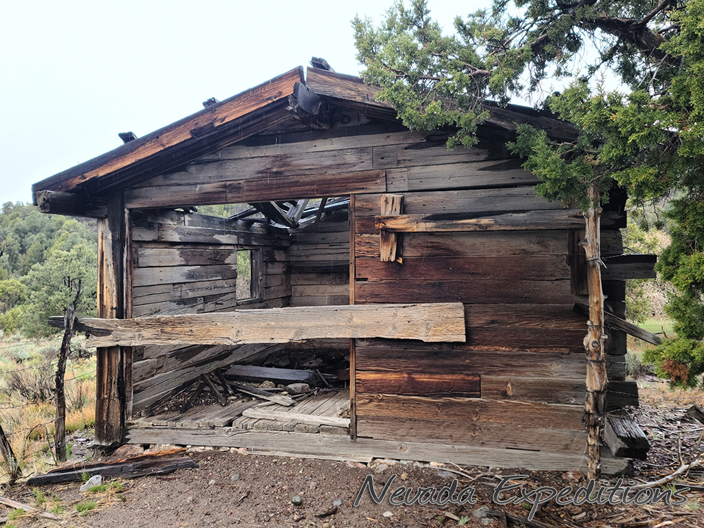 Gold discoveries about 1896 brought activity to the Nevada-Utah state line, and a camp known as Deerlodge formed around the office of the Gold Bug Mining Company early that year. On July 15, 1896, the camp was struck by a devastating fire. A new Deerlodge townsite was subsequently laid out below below the Homestake Mine, replete with log cabins and a post office. New work at the Horseshoe Mine to the south at the turn of the century paired with the closure of the Homestake led to the formation of the new camp of Fay, and by the end of 1900 most of Deerlodge's residents (and buildings) were moved there.