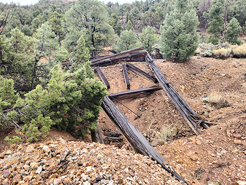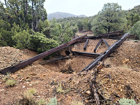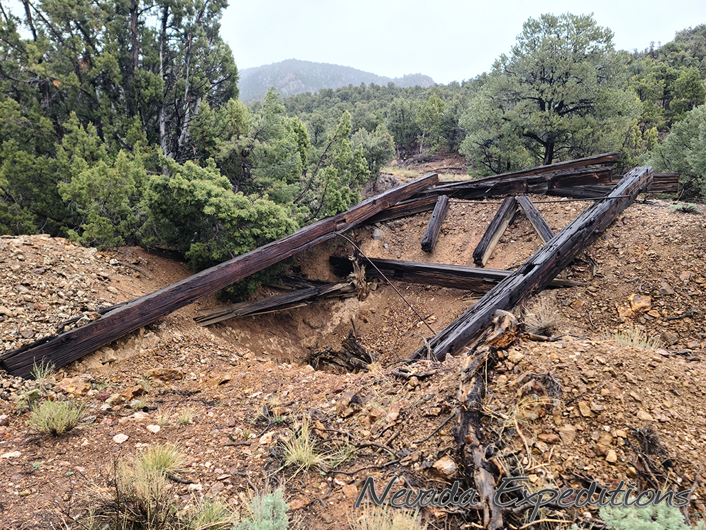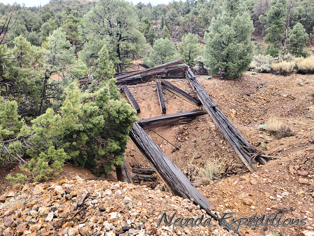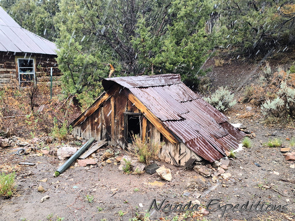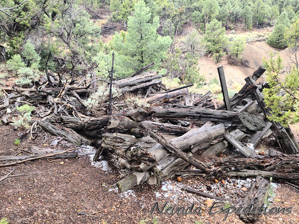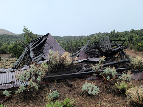 Gold discoveries about 1896 brought activity to the Nevada-Utah state line, and a camp known as Deerlodge formed around the office of the Gold Bug Mining Company early that year. On July 15, 1896, the camp was struck by a devastating fire. A new Deerlodge townsite was subsequently laid out below below the Homestake Mine, replete with log cabins and a post office. New work at the Horseshoe Mine to the south at the turn of the century paired with the closure of the Homestake led to the formation of the new camp of Fay, and by the end of 1900 most of Deerlodge's residents (and buildings) were moved there.