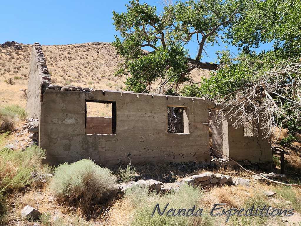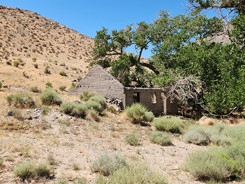 Following a gold discovery in 1861, the Washington Mining District was organized. Little is written about its early days, but in 1867 gold and silver discoveries led to the formation of a new camp called Washington astride the East Walker River. By the end of that summer, work was underway on the installation of an 8-stamp mill by Mr. Brooks & company, placed into operation in October. By December, however, the mill and mines were noted as being idle and Washington - a camp of four lumber homes and several of log, brush, and stone - was mostly empty. Devastating floods wiped out an estimated two-thirds of the town on December 31 of that year, though the mill was spared and plans were subsequently made to relocate it to Pine Grove. Little other activity was found at Washington during the next decades, but a post office was opened for fifteen months (possibly to serve local ranches or scattered prospectors, as the post office application mentions "no village" in the area). Interestingly, despite much activity being noted in newspapers of the time, Washington appeared on some maps as late as 1922. A concrete shell of a building stands at the site, likely a relic of twentieth century ranching as numerous ranches lined the East Walker River.