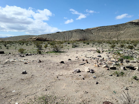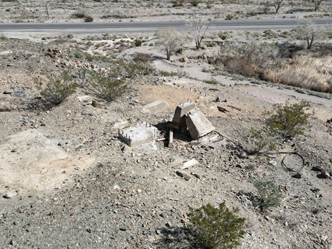 After Rhyolite began its decline late in 1908, Gold Center followed. Businesses closed, including the brewery and ice house, but the final death knell came when the Las Vegas & Tonopah Railroad removed its rails. Though the Tonopah & Tidewater would still pass through the old camp until 1940, Gold Center was finished. Ruins of the thirty-ton mill remain, overlooking scant foundations of the townsite.