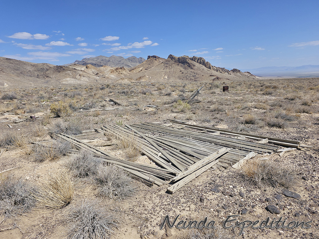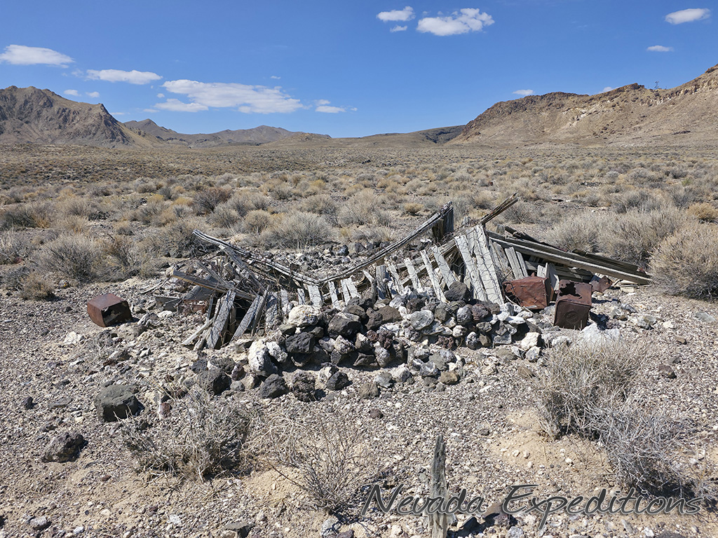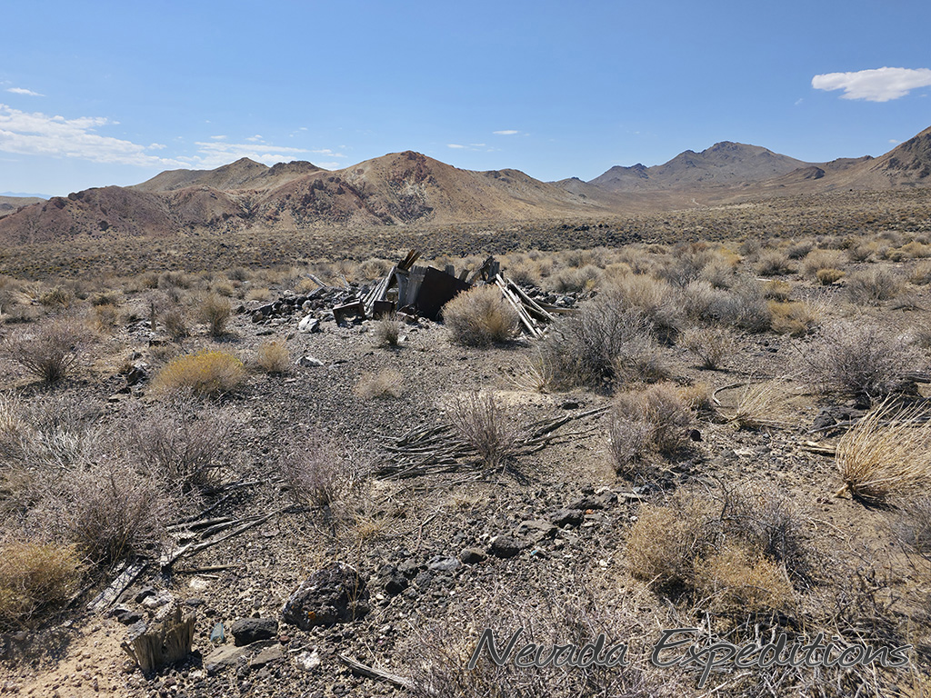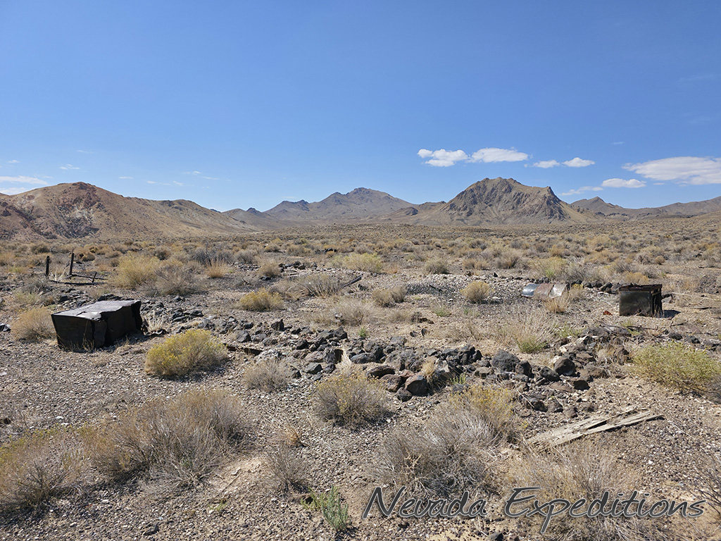 In 1912, Italian immigrant J.C. Tognoni discovered silver ore on the volcanic field west of Railroad Valley. He developed the springs there and, after 1918, began actively working claims with Harry Stimler (of Goldfield fame). 100 claims were filed by the Tognoni family and, by 1920, the camp of Silverton was born with a store operated by Chiatovich & Beko. By 1923, Stimler's association with Silverton came to an end, but the Tognonis continued to work the mine until around 1940, extracting some $20,000. Despite the limited success, Silverton continues to hold importance to the Tognoni family and a private cemetery near the site is still in occasional use.