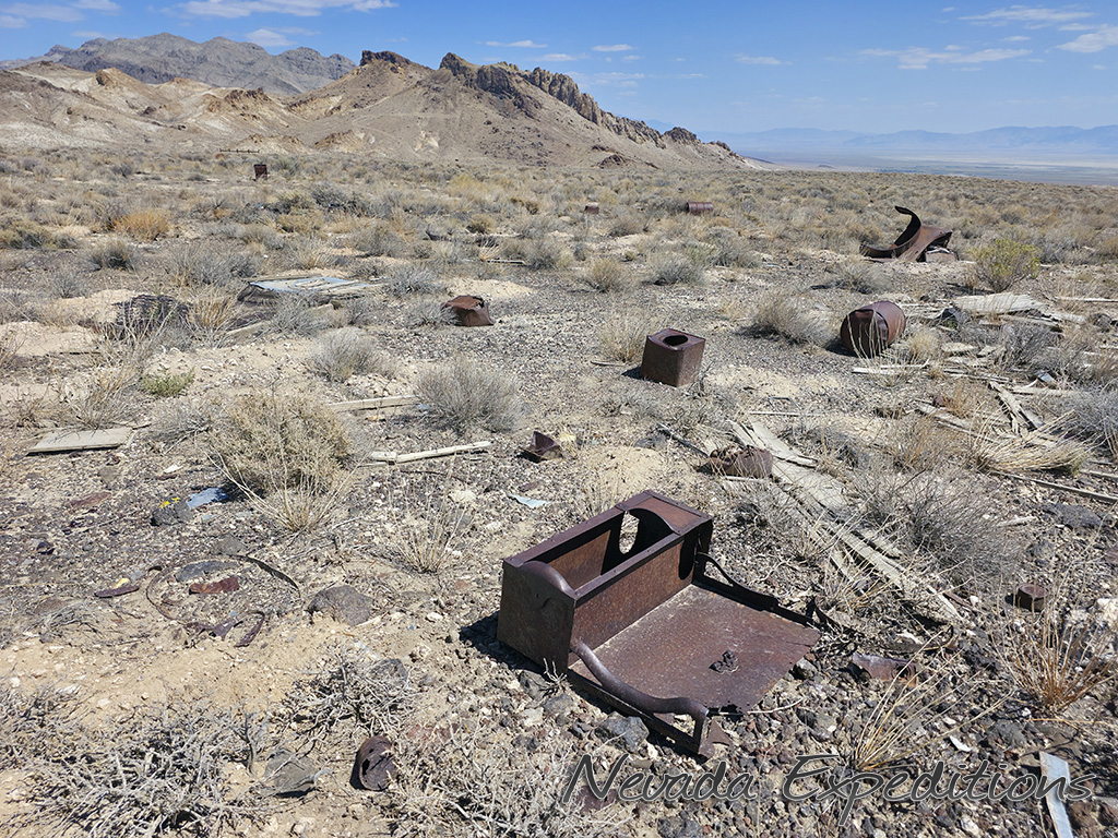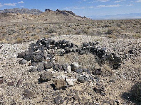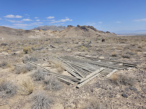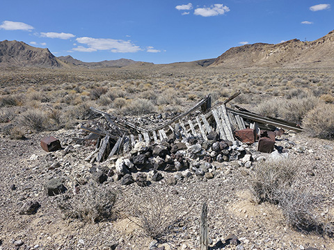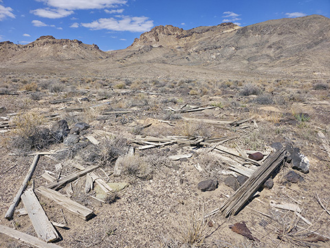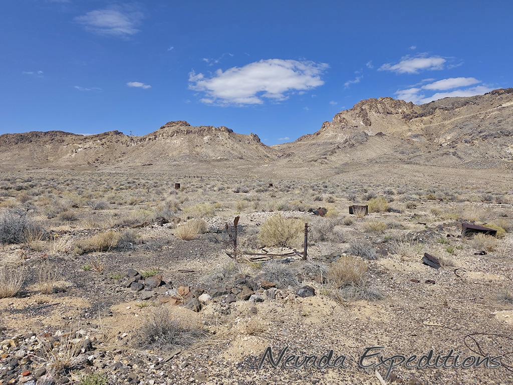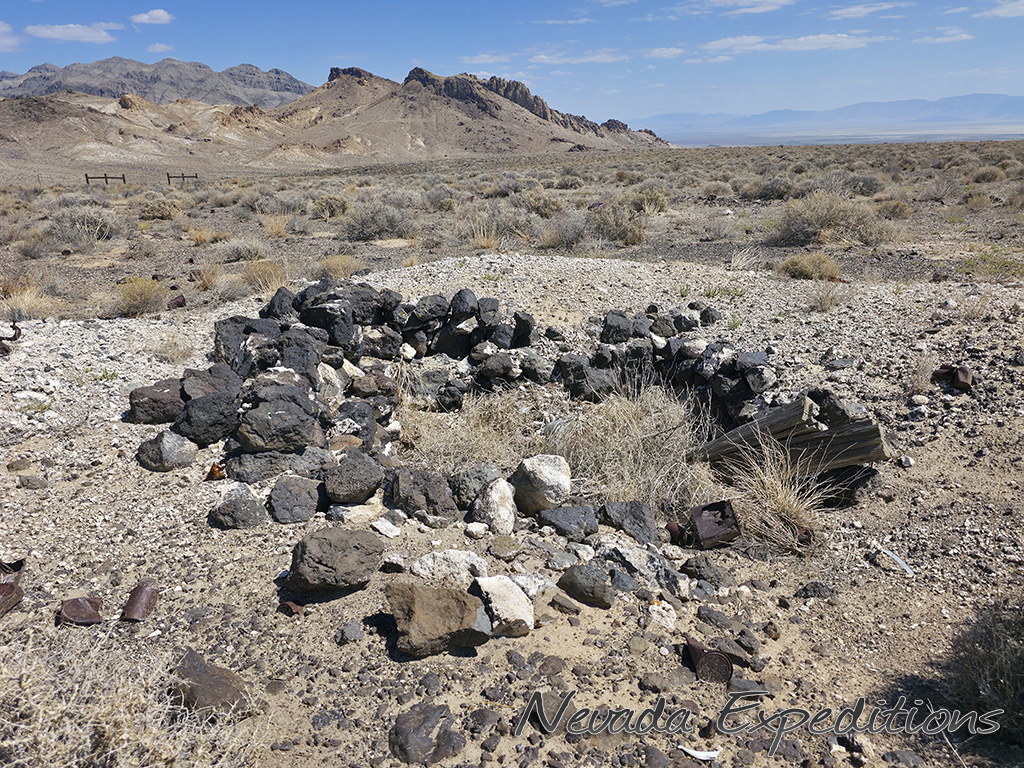 In 1912, Italian immigrant J.C. Tognoni discovered silver ore on the volcanic field west of Railroad Valley. He developed the springs there and, after 1918, began actively working claims with Harry Stimler (of Goldfield fame). 100 claims were filed by the Tognoni family and, by 1920, the camp of Silverton was born with a store operated by Chiatovich & Beko. By 1923, Stimler's association with Silverton came to an end, but the Tognonis continued to work the mine until around 1940, extracting some $20,000. Despite the limited success, Silverton continues to hold importance to the Tognoni family and a private cemetery near the site is still in occasional use.