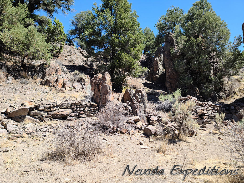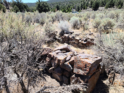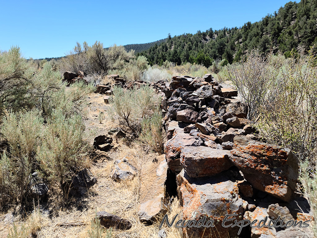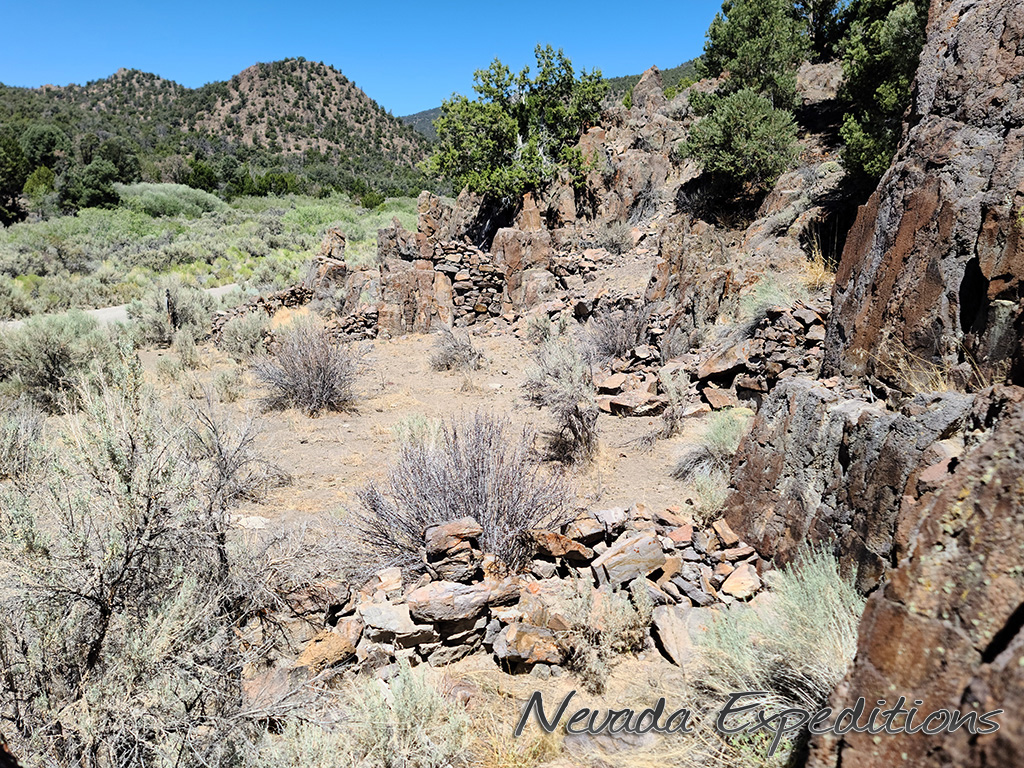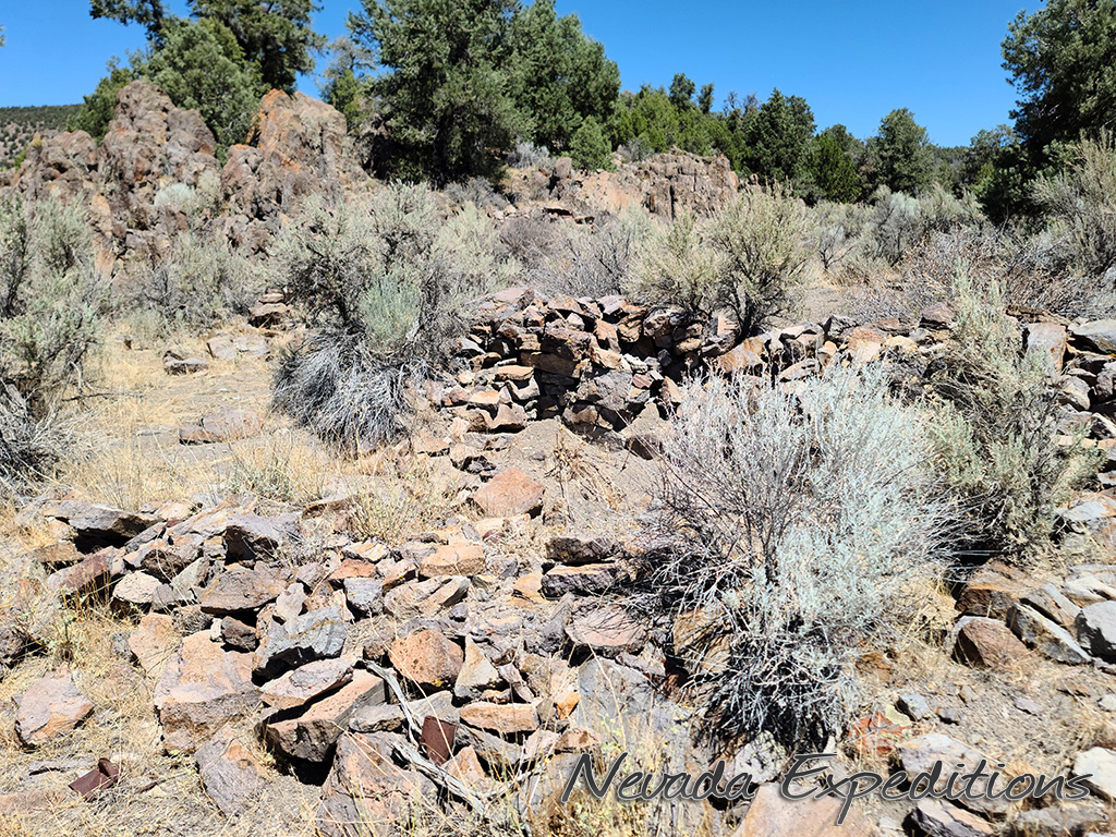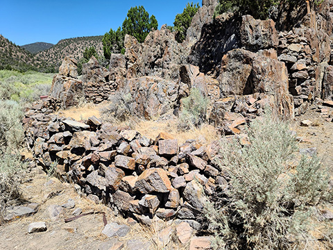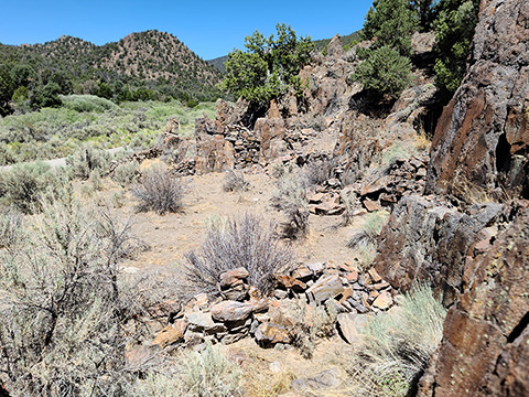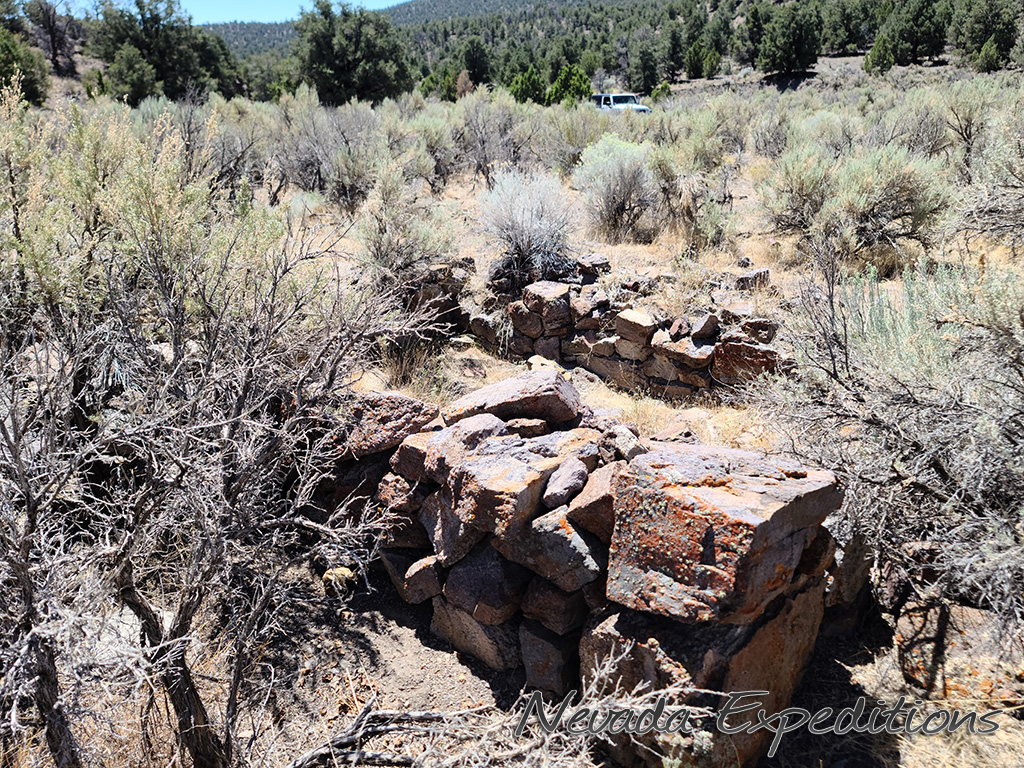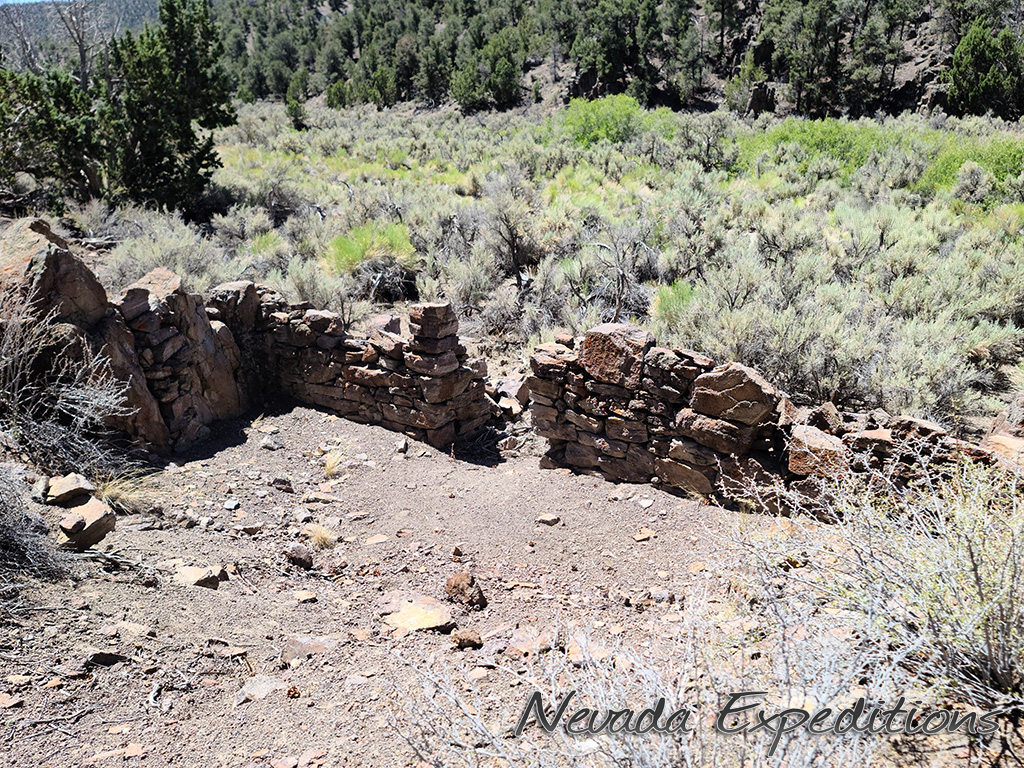 George Washburn operated this station along the Hamilton-Pioche stage and freight road during the 1870s. Despite the number of remaining ruins, I've found little else. The United States Forest Service undertook a cleanup of the site in 2003.