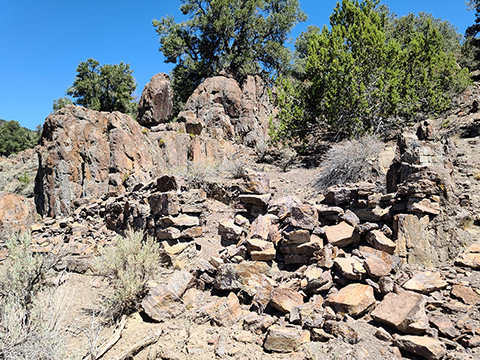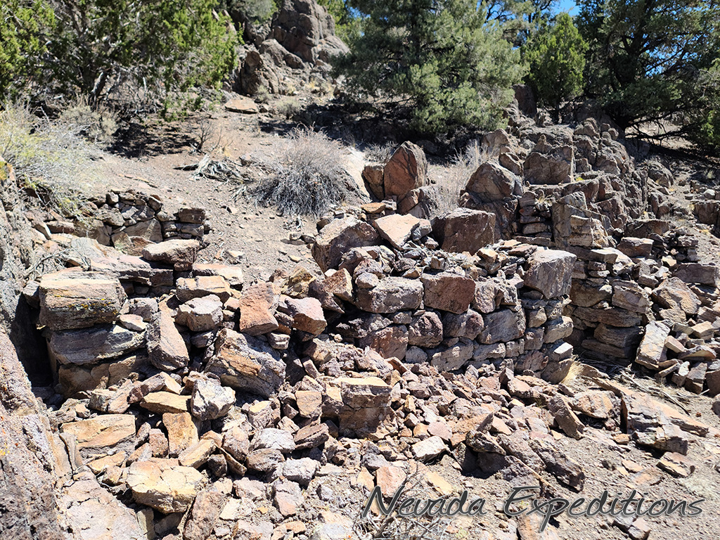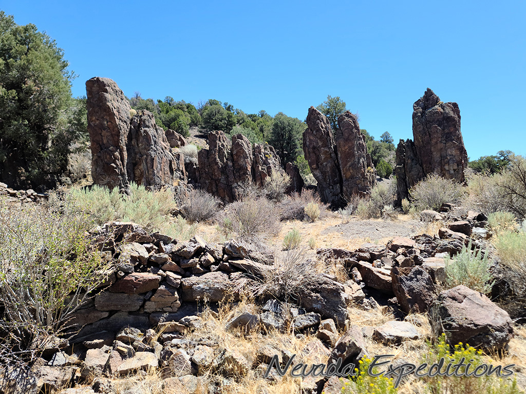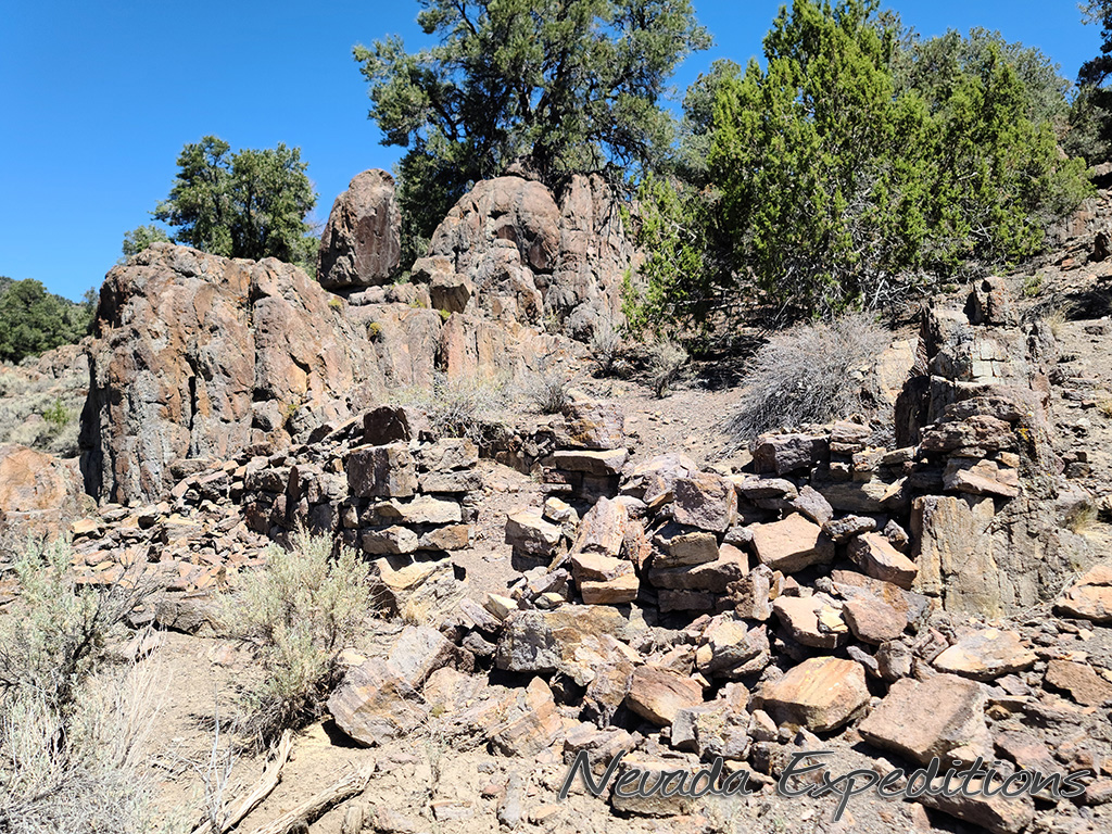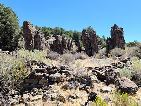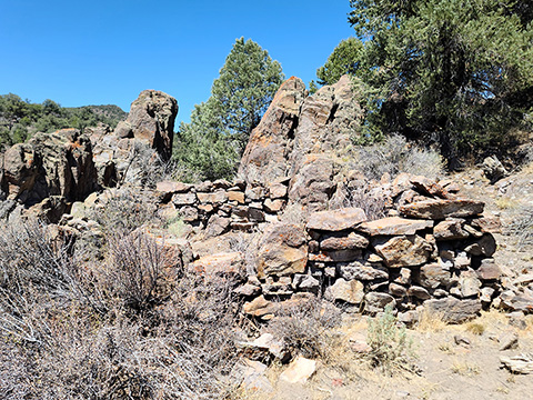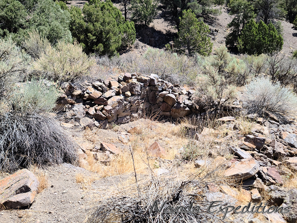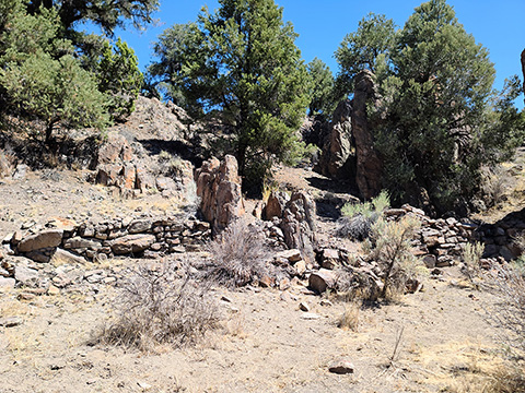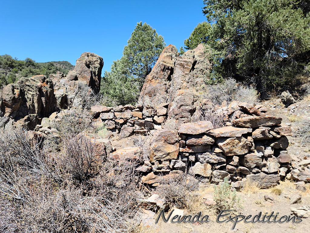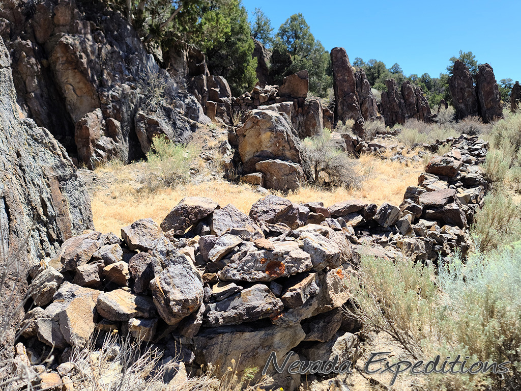 George Washburn operated this station along the Hamilton-Pioche stage and freight road during the 1870s. Despite the number of remaining ruins, I've found little else. The United States Forest Service undertook a cleanup of the site in 2003.